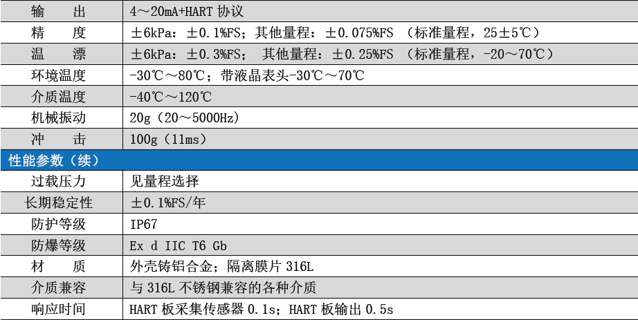 两线制,4~20mA 模拟输出, HART®协议数字通讯