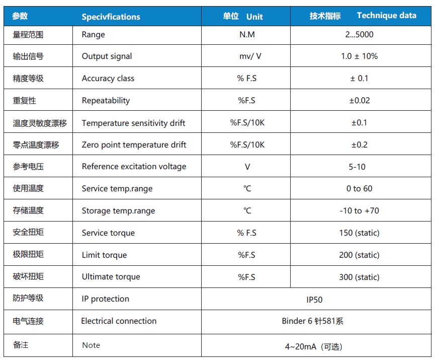 输出:1mv/V、0~±5/10V、4~20mA可选
