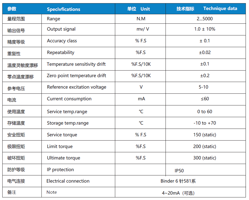 输出:1mV/V、0~±5/10V 、4~20mA可选
