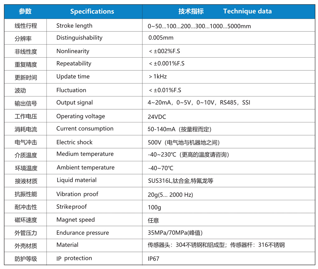 5000mm采用柔性特氟龙探杆时可以达到20米