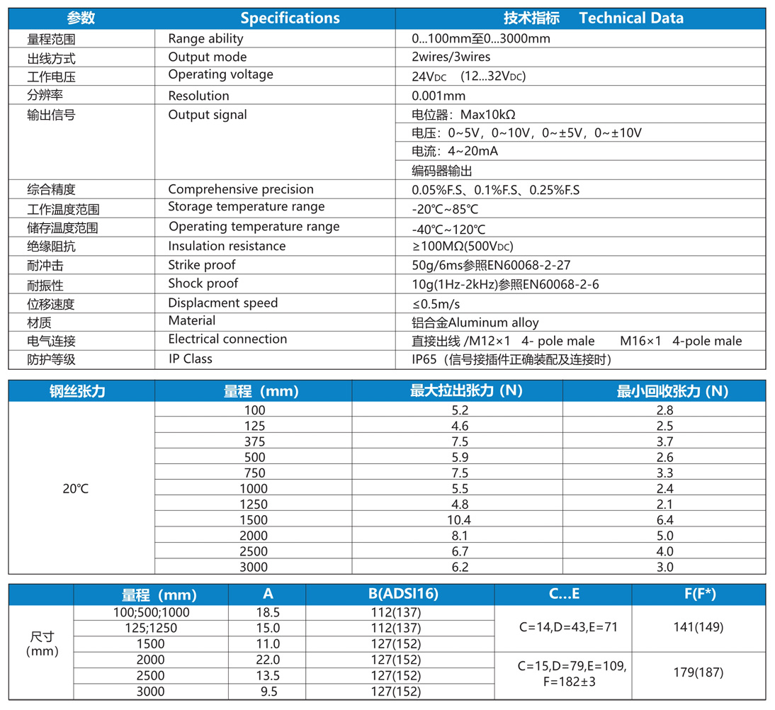 多种信号输出:0~5V,0~10V,4~20mA,RS-485,