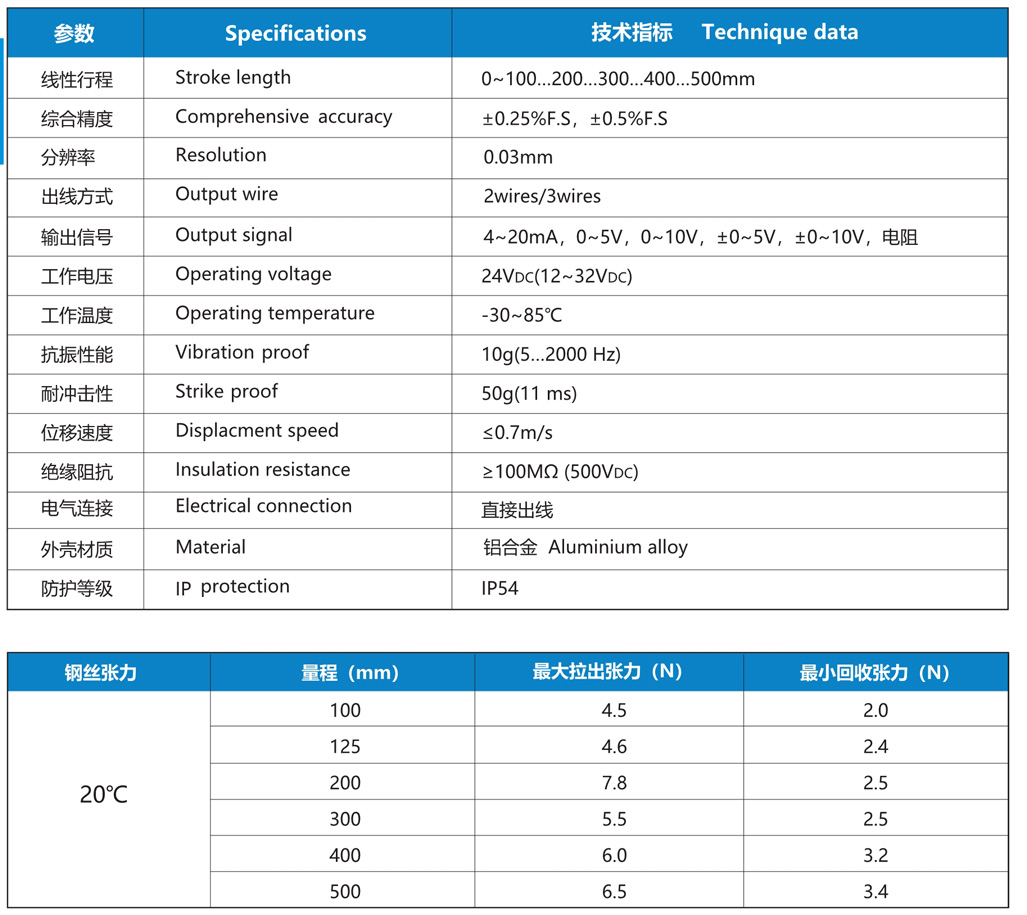 多种信号输出:0~5V,0~10V,4~20mA,RS-485,