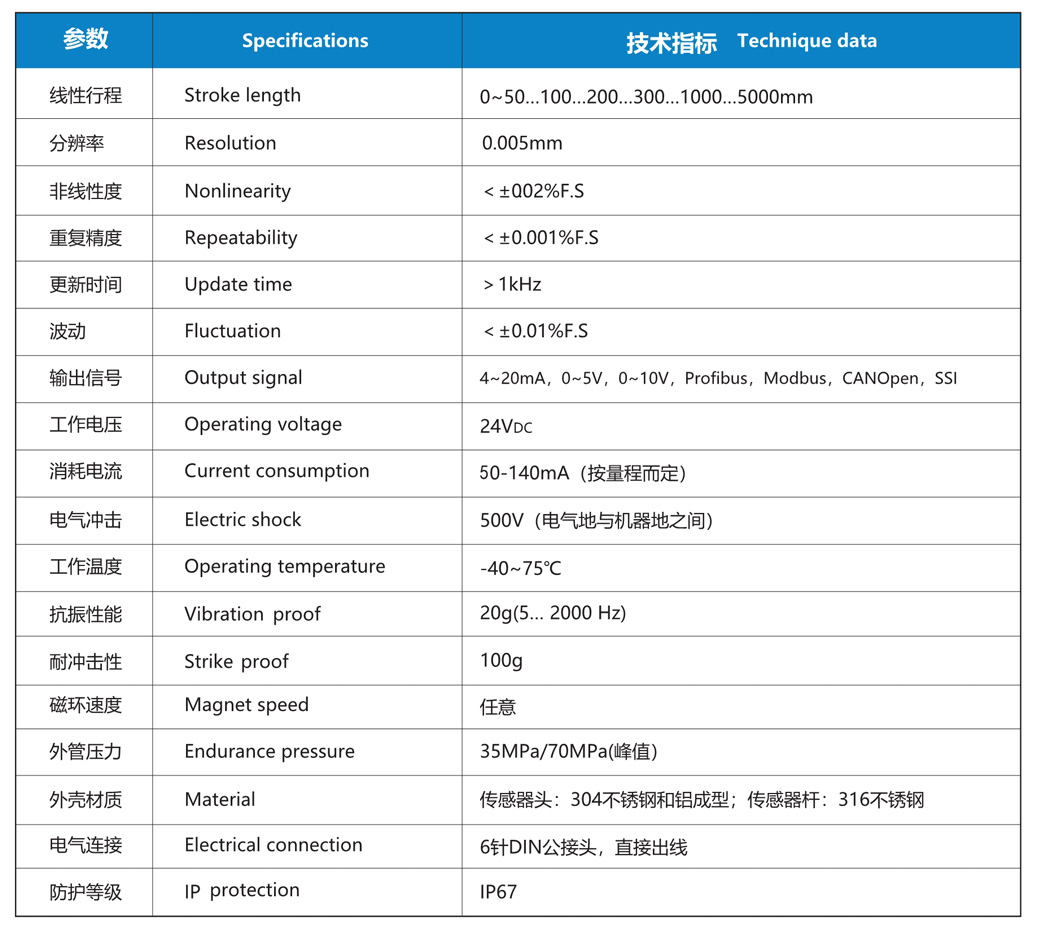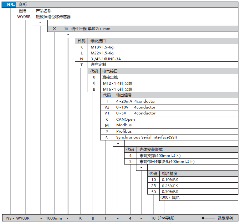 NS-WY08G系列 磁致伸缩位移传感器