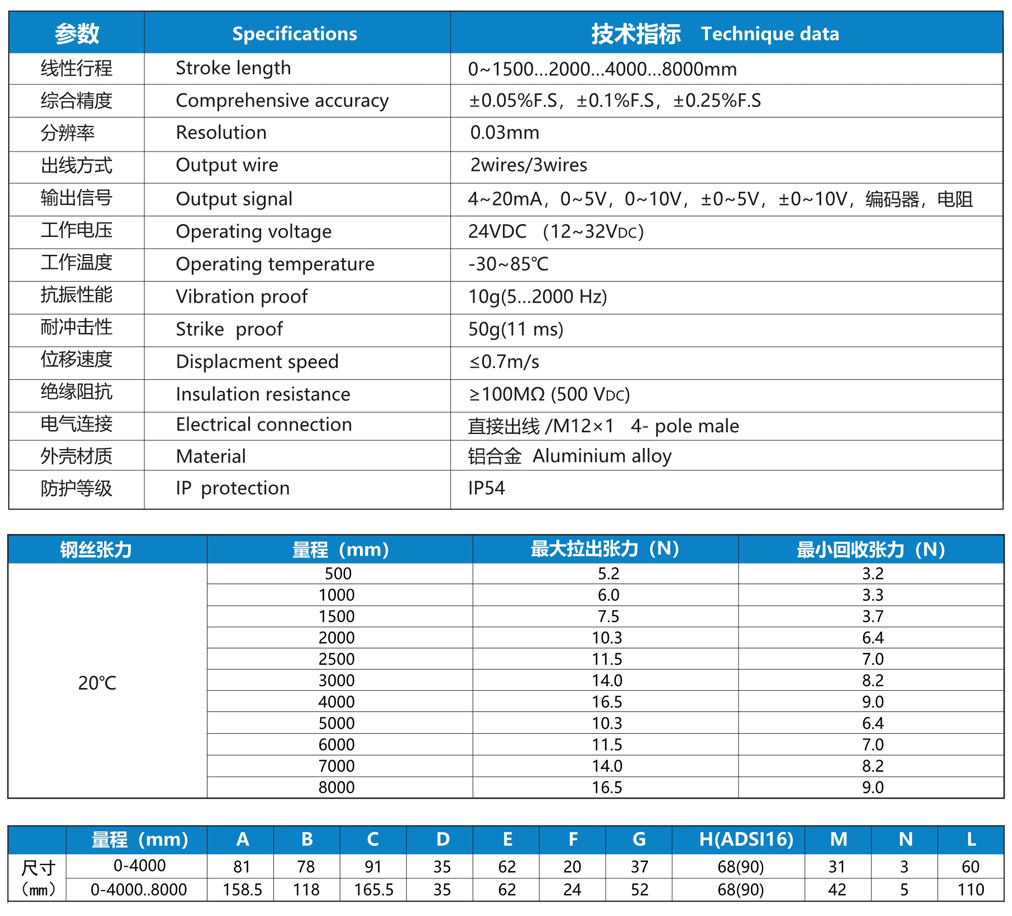 NS-WY07系列 拉线式位移传感器