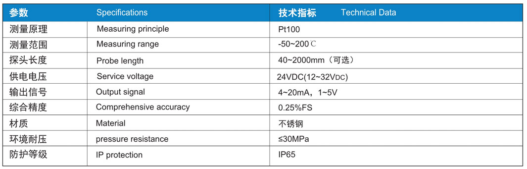 适宜于安装在装配式温度传感器无法满足要求场合和环境比较恶劣的场合